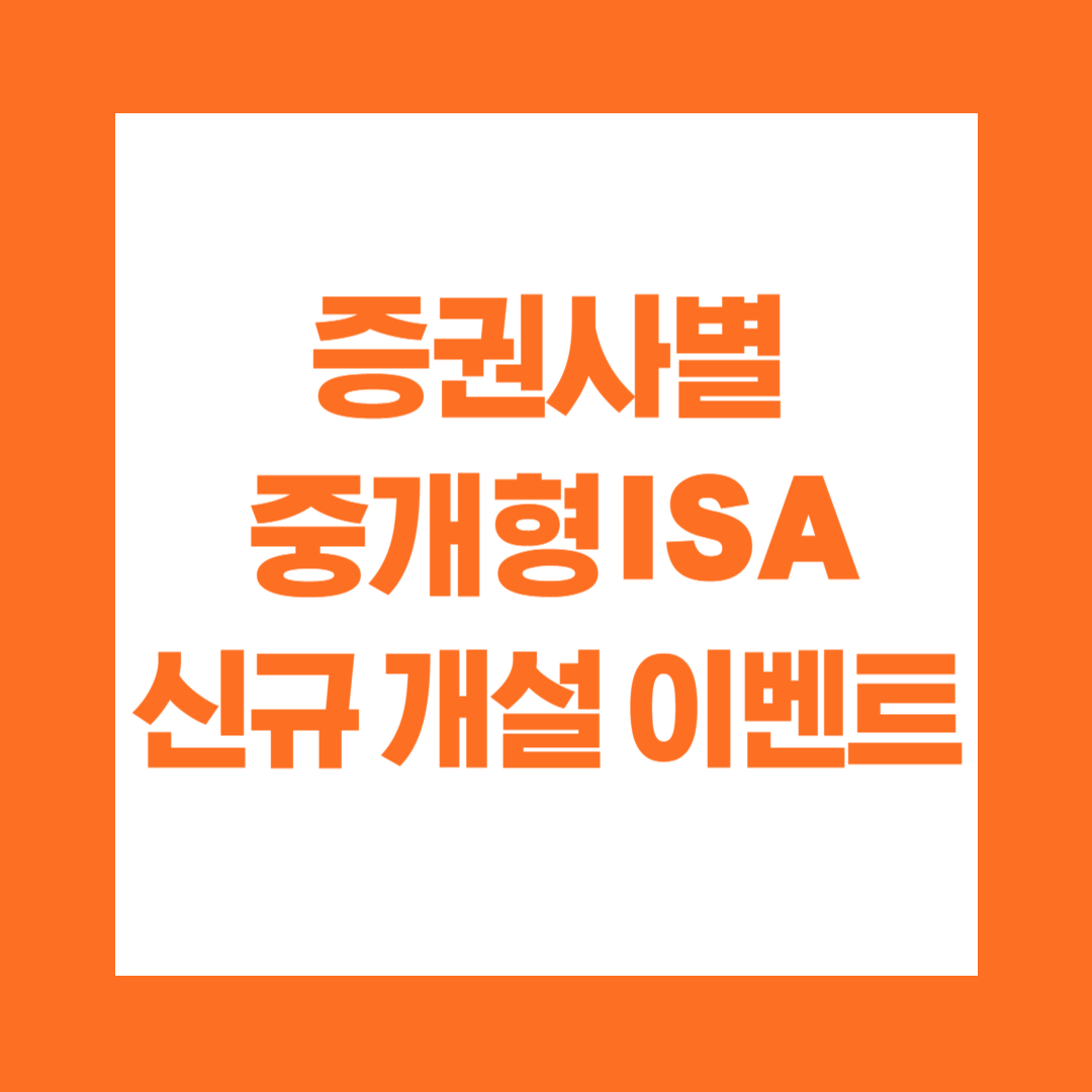 최근 금융시장의 변동성 증가와 함께 안전한 자산 운용과 세제 혜택을 동시에 누릴 수 있는 중개형 ISA 계좌가 많은 관심을 받고 있습니다. 오늘은 주요 증권사들이 제공하는 중개형 ISA계좌 신규 개설 이벤트를 알려드리고자 합니다. 오늘 글을 통해 여러분에게 맞는 ISA 계좌를 선택하는데 도움 받아가시길 바랍니다.
