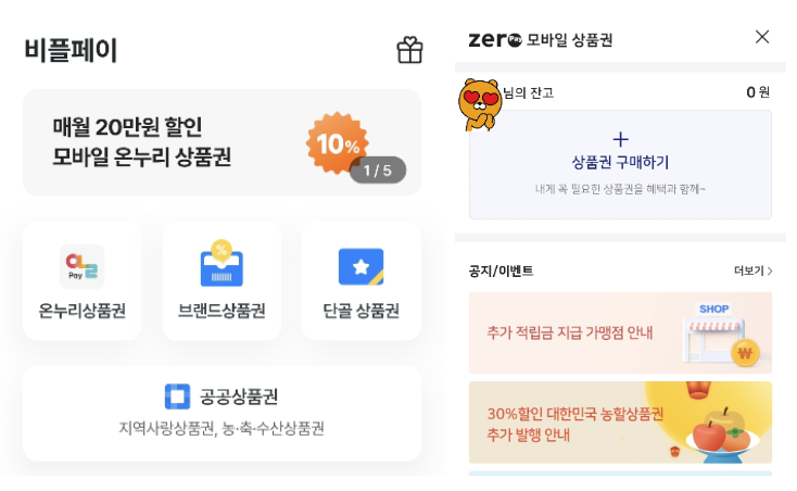 이러한 농할상품권은 비플페이 앱에서만 결제가 가능합니다.