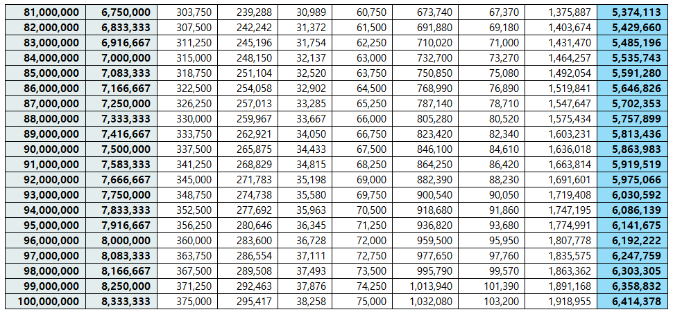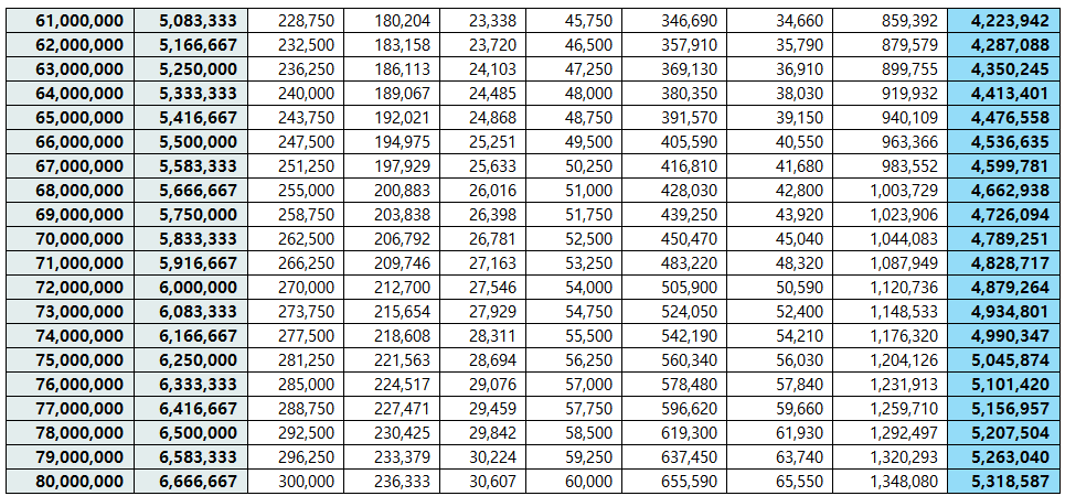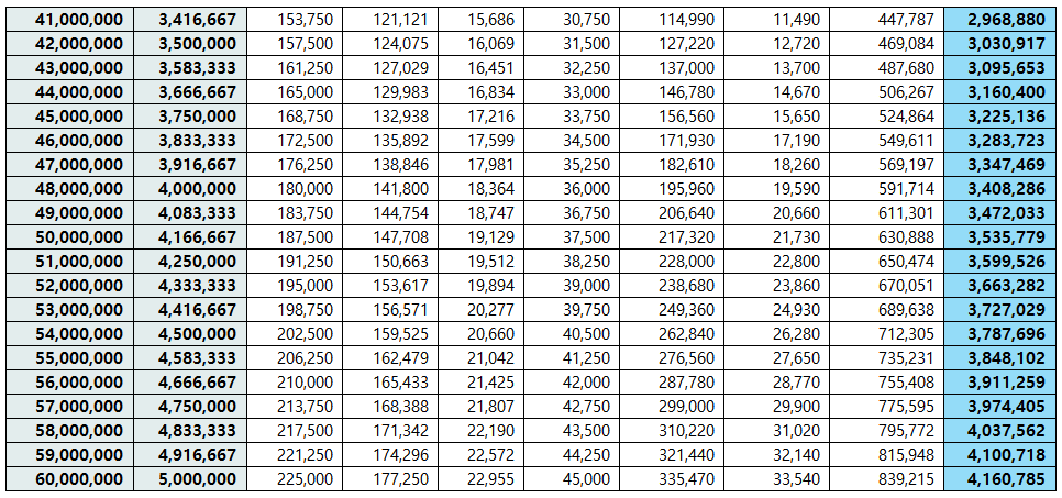 그렇다면 공제금액을 제외한 연봉별 실 수령액은 얼마나 될까요? 각 개인별로 공제금액은 조금씩 차이가 있을 수 있지만 아래 표를 참고하시면 대략적으로 유추해 볼 수 있을 것입니다.