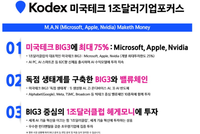 이번 포스팅에서는 AI 시대를 선도하는 기업들에 집중 투자할 수 있는 Kodex 미국테크1조달러기업포커스 ETF에 대해 알아보겠습니다.